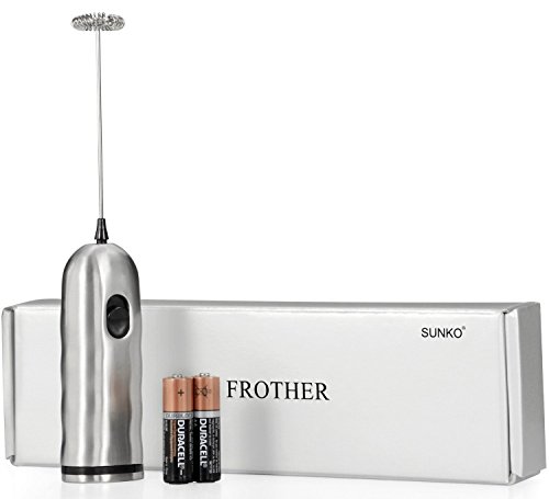 on Milk Frother, SUNKO Electric Handheld Latte Cappuccino Coffee Maker with 2 AA DURACELL Batteries.