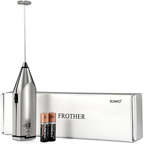 on Milk Frother, SUNKO Milk Frother Wand Coffee Foamer & Espresso Maker with 2 AA DURACELL Batteries.