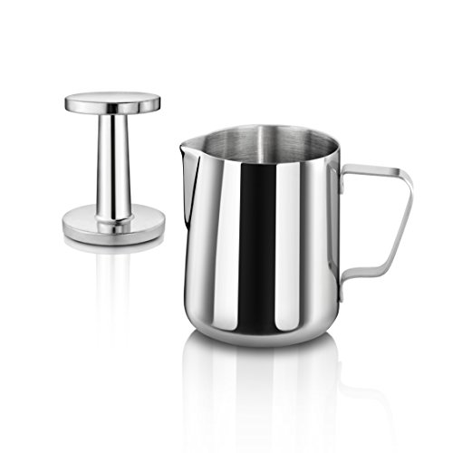That makes it very easy for me to recommend the New Star Foodservice 28829 Commercial Grade Stainless Steel 18/8 12-Ounce Frothing Pitcher and Die Cast Aluminum Tamper Combo Set as well..