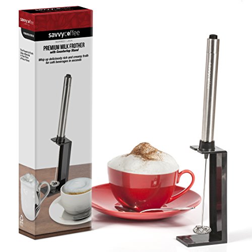 quality product that will will enjoy, buying Savvy Coffee Handheld Milk Frother Wand with Stand – Professional Stainless Steel Drink Mixer & Barista Latte Art Tool – Make Decadent Cafe Style Foam for Cappuccinos, Macchiatos, Lattes, Teas, & More is an excellent choice.